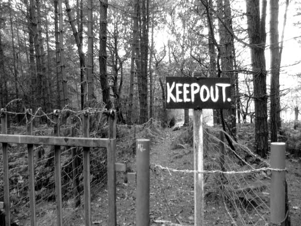 Keep out? well, all that barbed wire makes it look like such an inviting place -their very own private prison camp... i wonder if there's another sign on the back saying "Stay In"? It makes me wonder how much ones external reality echoes ones internal state.... perhaps these poeple have intimacy issues!