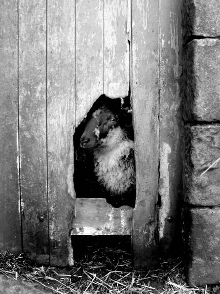 how long will it take for the sheep to nibble its way through the door to freedom? Its impassive look reminds me of that look that prisoners behind fences always have - slightly blank, resigned and traumatised.
