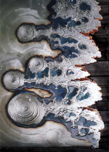 Heat Haze detail showing the concentric and layered forms, and more clearly showing the oxidised backing at the edge.
