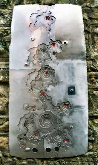 Polished steel, stainless steel inserts, red paint. 115cm. 2005.