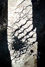 White lines. Lovely. I used to have an old Ricoh camera from the 70's that leaked light which often ruined pictures, but occasionally threw out really good accidents - the red cast, below right.